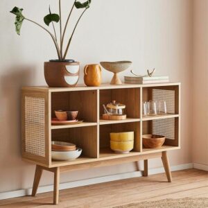 WOOD WICKER STORAGE UNIT