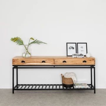 Anchor addition to any space, with our 4 drawer wooden console table, which features a mix of materials – from solid metal frame to natural oak wood.