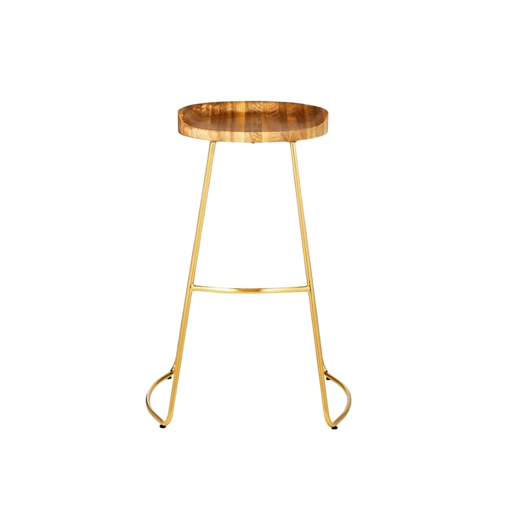 ● 4 Wood and Brass Metal Bar Stools