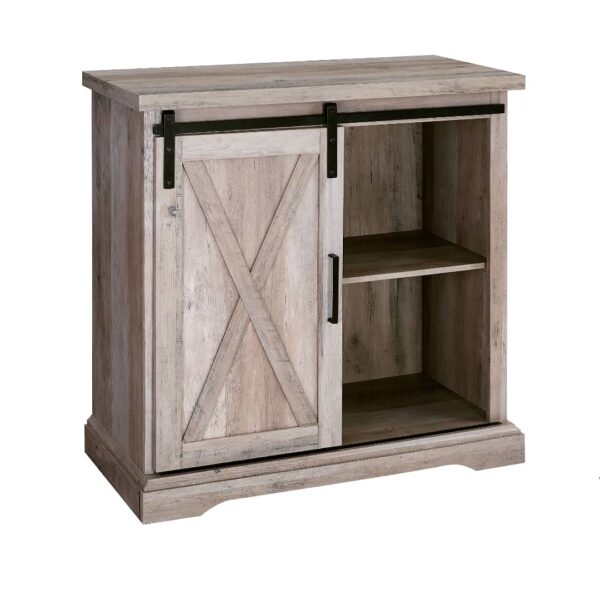 With a barn-inspired cabinet door front, the Modern Farmhouse ash grey Accent Cabinet exudes aesthetic charm for your home.
