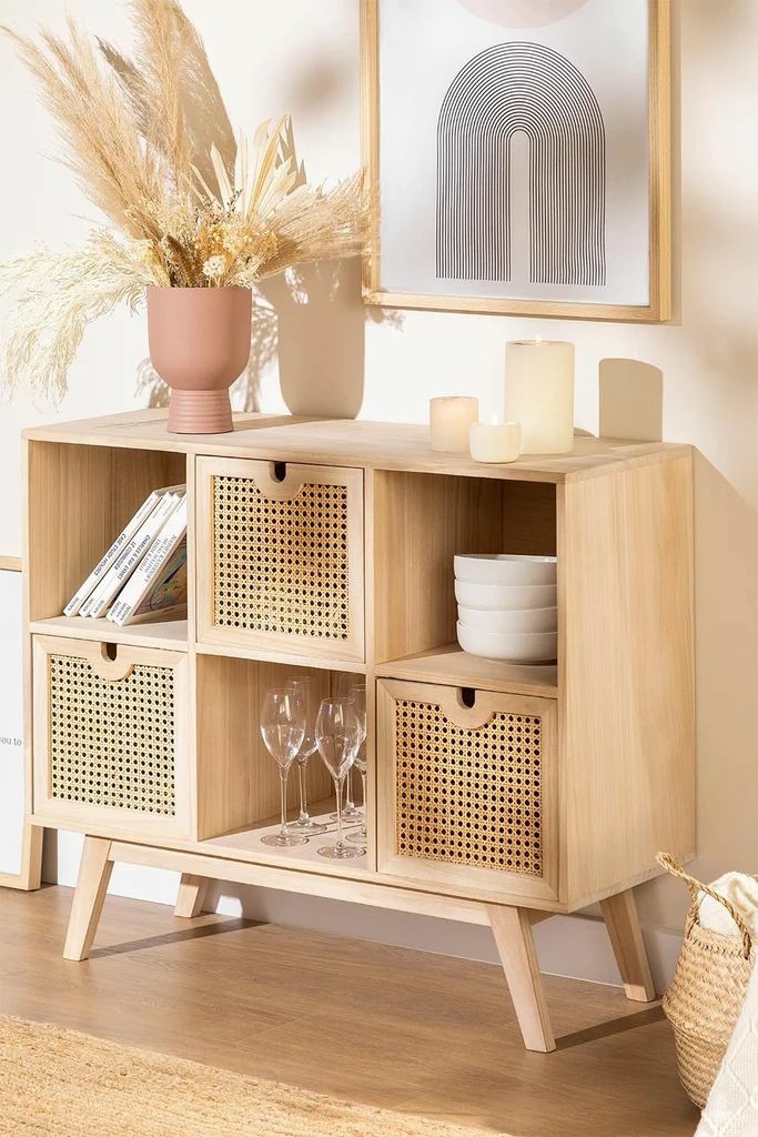 Our Wooden Sideboard with Wicker on cabinet drawers is designed following the latest trends in interior decoration, fusing a careful vintage-style design with wicker details with a robust and resistant structure in solid wood.