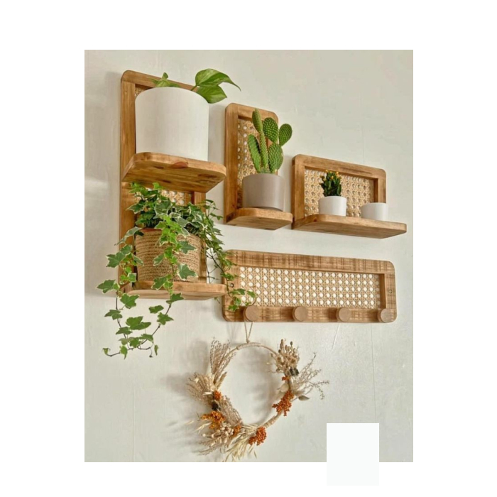 Our  wicker shelves set consists of four shelves set , creating a unique composition. It is a modern and practical wall decoration. Thanks to the minimalist, simple form, the shelves will look beautiful in any interior.