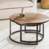 The 2 round coffee table tops are spacious enough to hold your coffee, books, magazines, greenery and more, adding warmth and texture to a family room or casual living room.