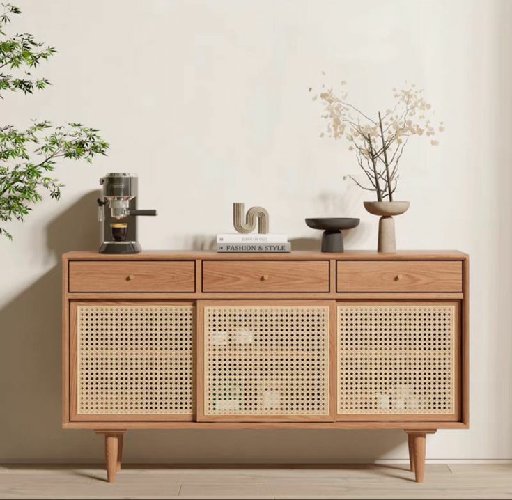 Anchor addition to any space, with our Wicker sideboard, which features a mix of materials – from wooden canne to natural solid wood.
