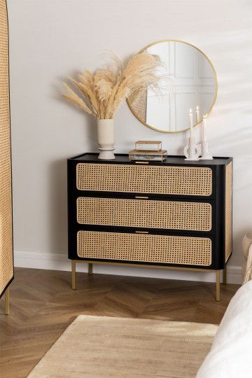 Curate a dreamy bedroom setup with this gorgeous Wood and Caned Rattan  Chest.