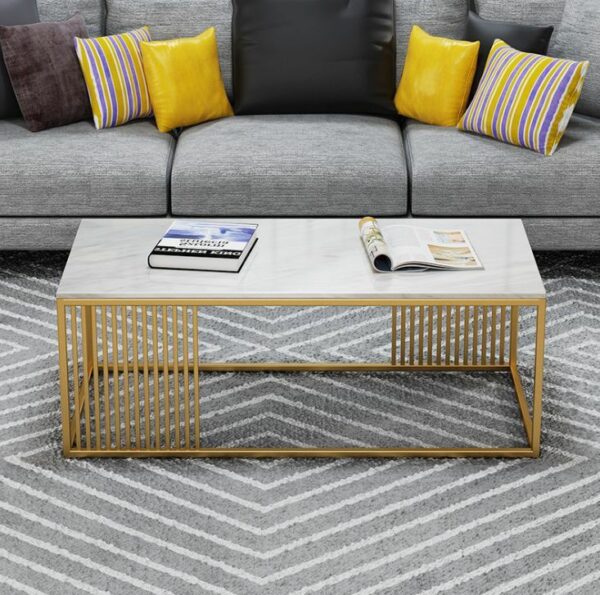 The Marble coffee table put its own twist on a central piece of living room furniture. Inspired by timeless materials, the frame is made of beautiful gold-brushed metal and features a marble-grained tabletop for a high-end look with classical Greek overtones.