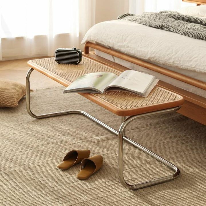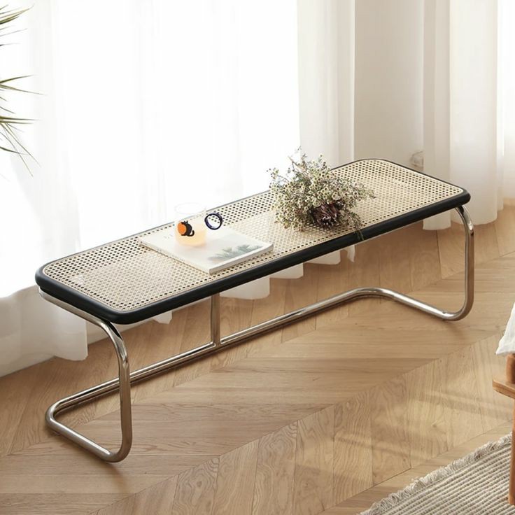 Bring those boho vibes to your living room / bedroom with our wood,metal and wicker constructed bench. It can perfectly be used as dining table bench / bedroom bench/living room bench etc.