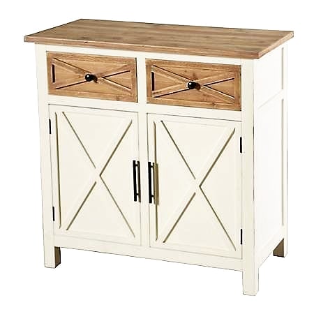 Classic rustic style and convenient storage space comes together in perfect harmony in the design of our Wooden Natural X-Cross Detailed White Cabinet!