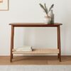 Constructed in solid wood,this hand crafted table has 1 jute bottom open shelf to provide you space to keep all your items handy.
