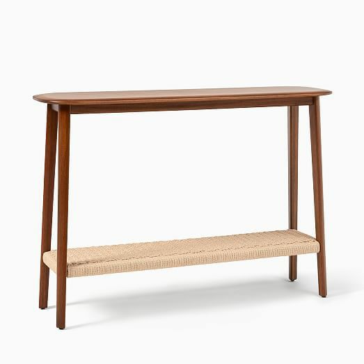 A lovely wood with jute desk you can snag, if you need plenty of table space to spread out all those facts and figures while you work.