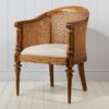 Featuring hand woven canne,wood legs and a plump silhouette worth sinking into, this design recalls a vintage Italian classic, crafted to accommodate guests over lingering dinners or for those untiring working hours.