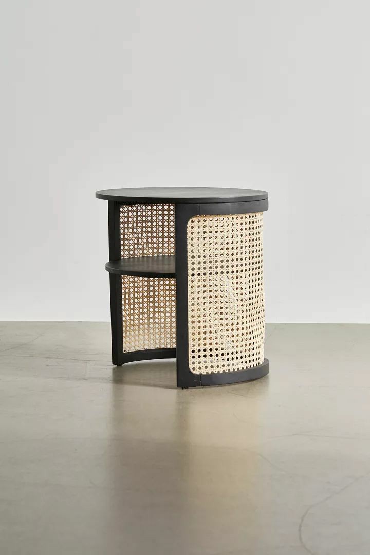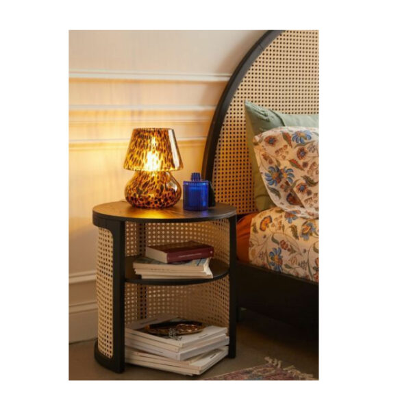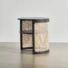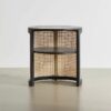 Add a natural soulful touch to your home with these two tier bedside table, made from solid wood with a woven rattan front. Crafted from solid wood, it has two deep shelves, with a contrasting black metal polish which brings a pop of colour to the natural finish of wood.