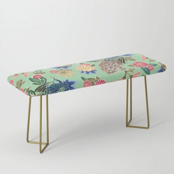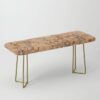 Inspired by the sculptural forms of Italian mid-century design, our Gold metal Bench balances elegant curves with a thick cushion on slender metal legs. Its low, tight back makes it ideal for at the foot of a bed or next to a window.