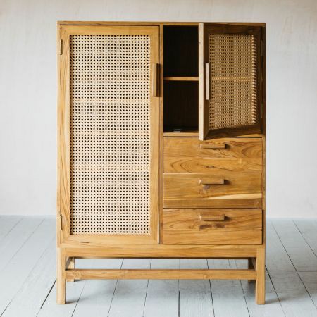 We’re loving the mix of materials—wood, and cane—and the dimension they add to your space.