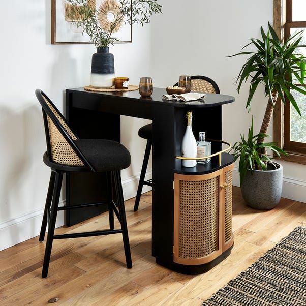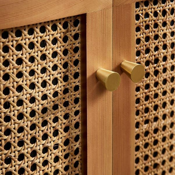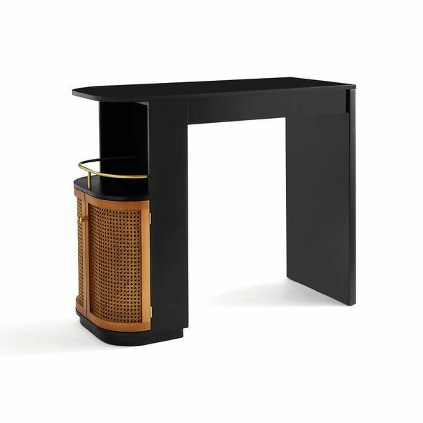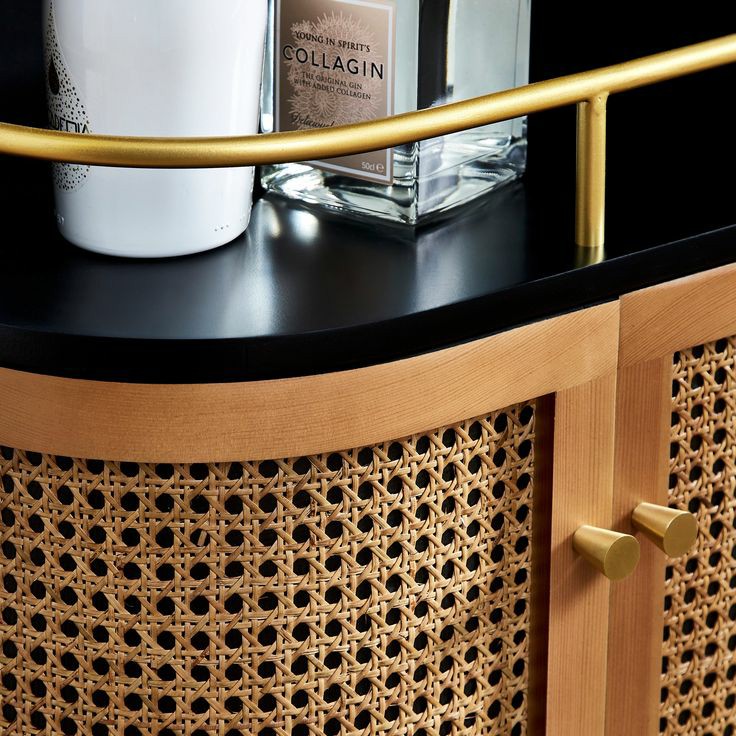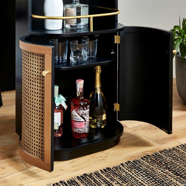 Whether serving up cocktails at your next weekend, get-together with family and friends, or looking to lend a modern touch to your living room look, this bar cabinet is here to help. Crafted from a blend of solid wood, it features canne close cabinet and strikes a clean-lined silhouette. And with natural wood grain accents, it also brings a touch of modern style.