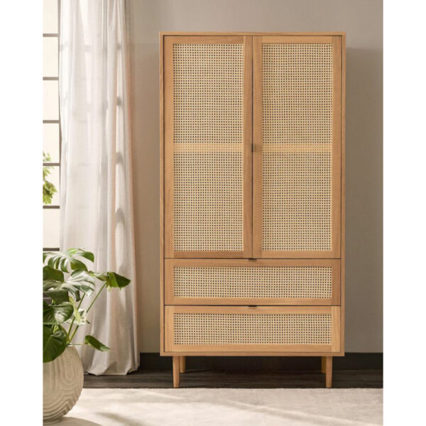 Characterized by the stunning natural rattan fronts and contrasting solid wood surround, our wicker storage unit brings a modern take on a retro design. Perfect for any contemporary or global styled home, it has 2 close storage drawers for that touch of glam.