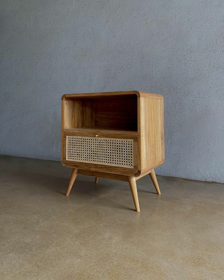 Add a natural soulful touch to your home with our canne bedside table, made from solid wood with a woven rattan front. Standing on four wooden legs, it has two storage shelves, with a contrasting brown polish which brings a pop of colour to the natural finish of wood.