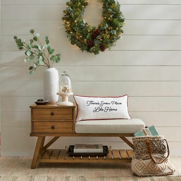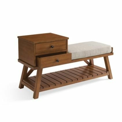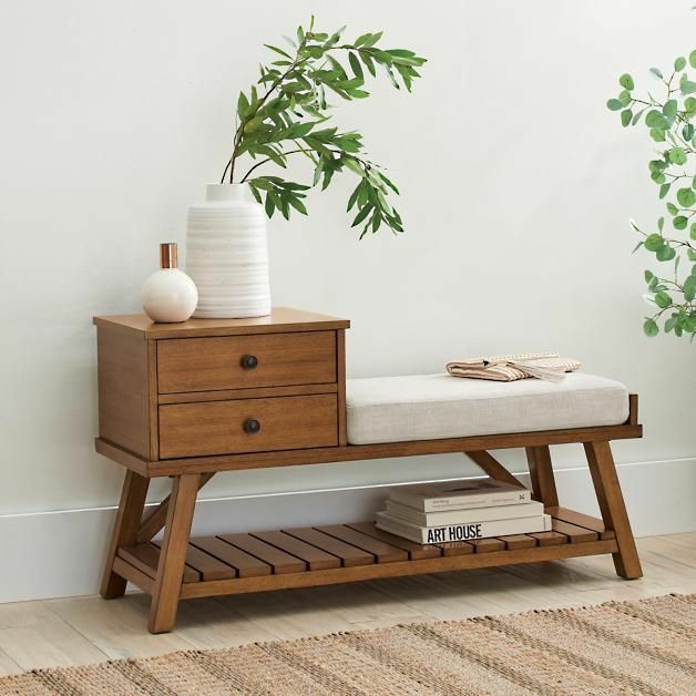 ●Wood entryway bench; cushion & storage