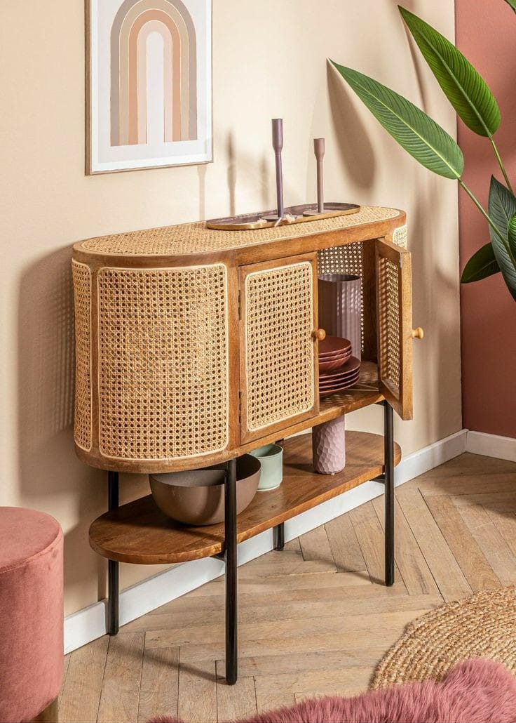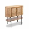 Whether serving up cocktails at your next weekend, get-together with family and friends, or looking to lend a modern touch to your living room look, this bar cabinet is here to help. Crafted from a blend of solid wood, it features four splayed metal legs and strikes a clean-lined silhouette. And with natural wood grain accents, it also brings a touch of rustic style.