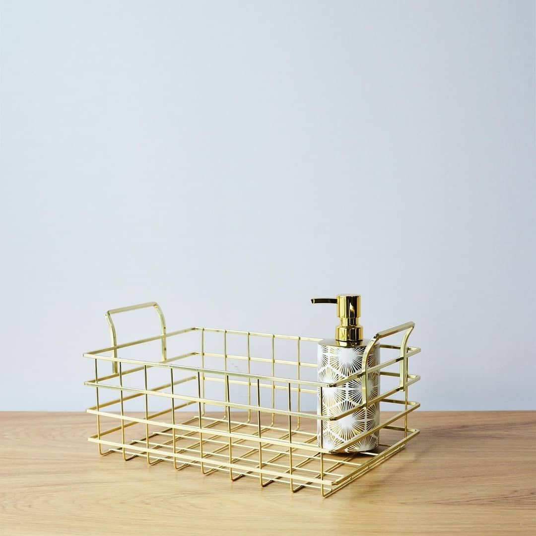 Crafted from sturdy iron, this wire basket in a luxurious gold is ideal for storing all your essentials.