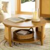 The coffee table will add a pleasing focal point to your space. The piece is constructed out of solid wood and has open shelf.