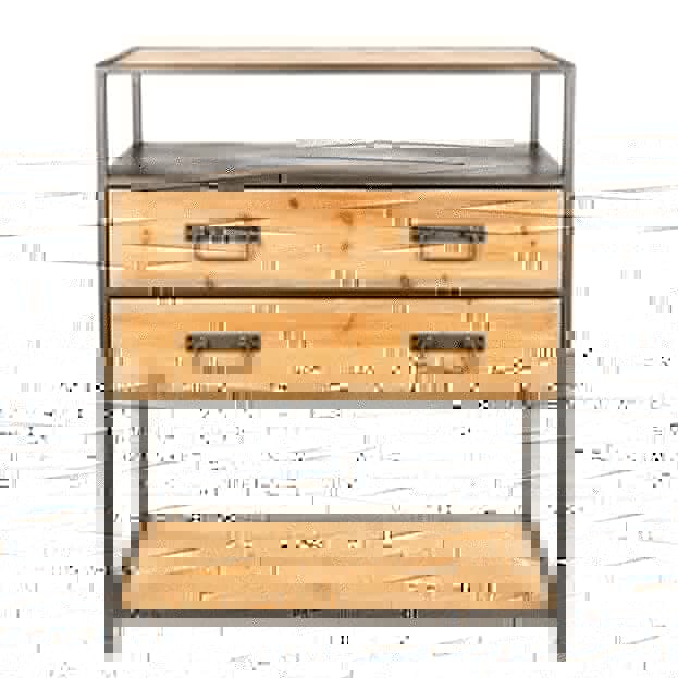 With ample storage space, show off your collection of houseplants, family photographs, home accessories and beloved holiday souvenirs! Including 2 large drawers, each featuring distressed hardware details, to keep your not-so pretty knick knacks out of sight!