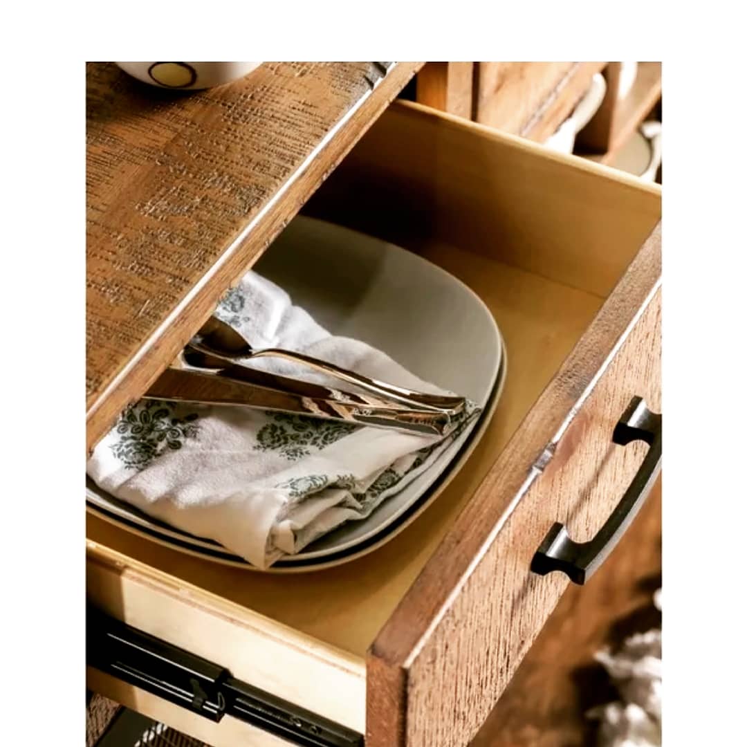 - Three (3) drawers with metal handles