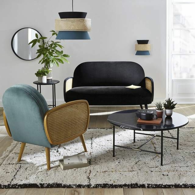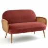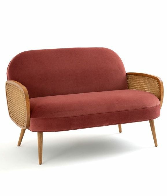 Handmade of solid wood with rattan panels on the armrests, this loveseat features a foam-filled seat and back for comfort.