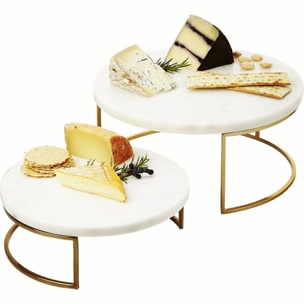 Take these set of marble display platter for example,perched atop an iron pedestal base, it showcases a marble circular as top, forming a perfect eye turner set.