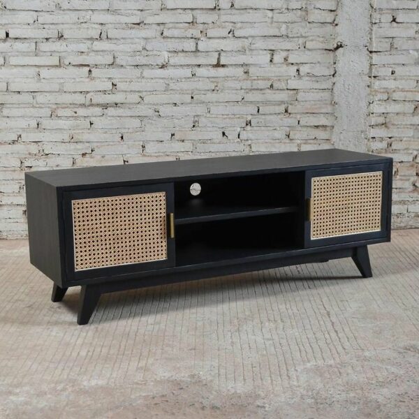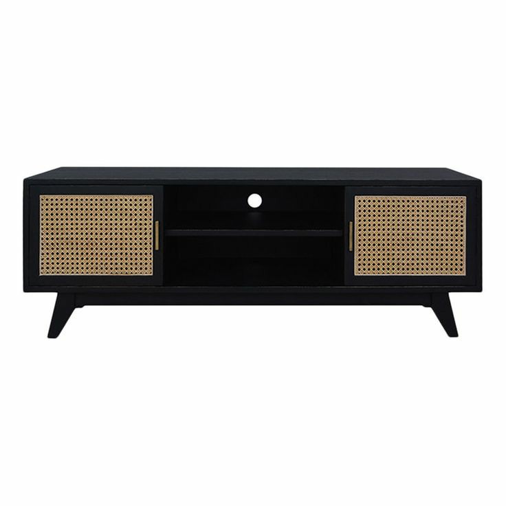 We love the rattan panes inset into the doors that give this piece a retro vibe allowing you to keep your essentials handy and out of sight.