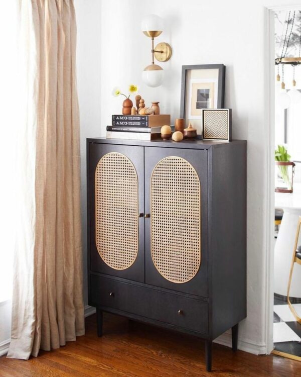Bring home the beauty and versatility of the Solid Acasia Wood and Hand woven wood canne Multi-Use Cabinet.