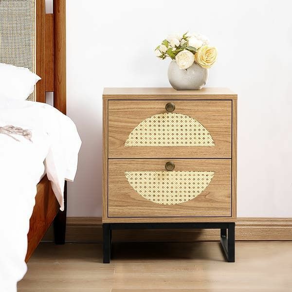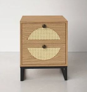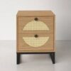 THE BEDSIDE TABLE IS CONSTRUCTED WITH SOLID WOOD /CANNE & METAL LEGS.THE WICKER IS HANDWOVEN, WHICH MAKES THIS PIECE EVEN MORE AUTHENTIC.