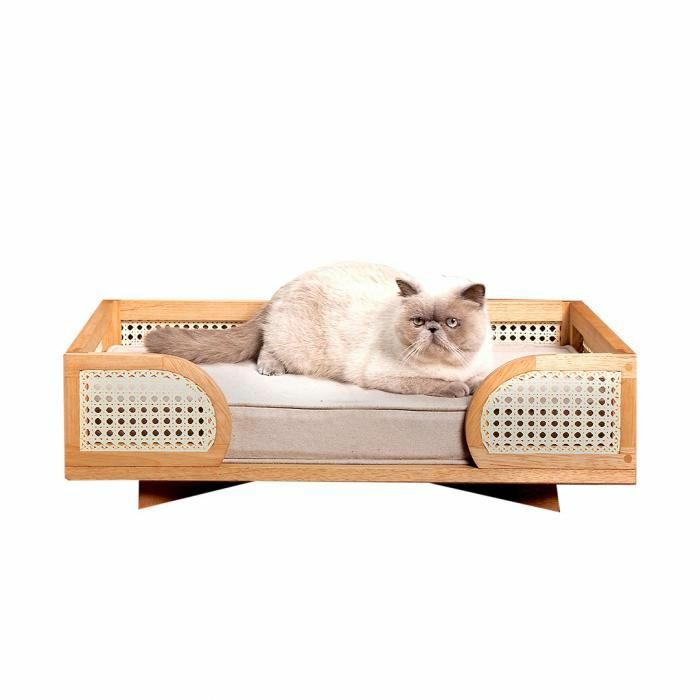 The elevated wooden frame provides your dog/cat a sense of security and protection, while the cozy padded cushion invites for a comfortable curled up nap.