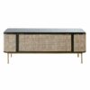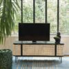 The TV stand is a chic modern piece and a customer favorite. This stunning piece is constructed of solid wood and features three gorgeous storage cabinets with rattan door.