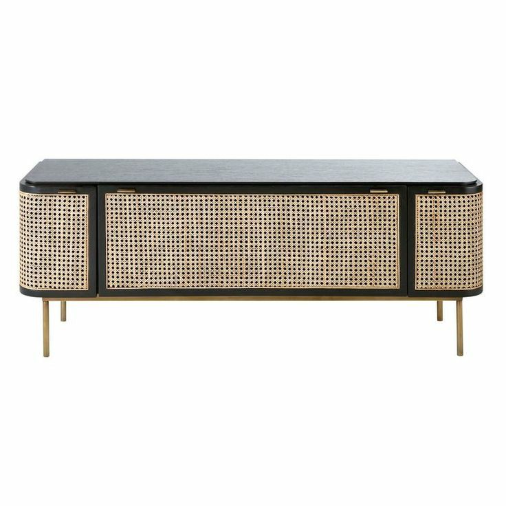 The TV stand is a chic modern piece and a customer favorite. This stunning piece is constructed of solid wood and features three gorgeous storage cabinets with rattan door.