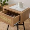Simple yet striking, this nightstand is crafted with a combination of hand woven cane, solid wood for the right blend of strength and style.