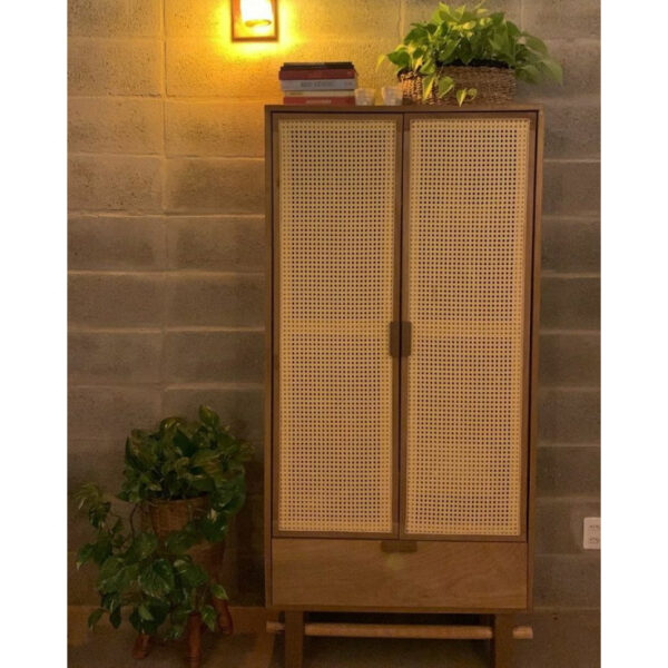 Characterized by the stunning natural rattan fronts and contrasting solid wood surround, our wicker storage unit brings a modern take on a retro design. Perfect for any contemporary or global styled home, it has 1 close storage drawers for that touch of glam.