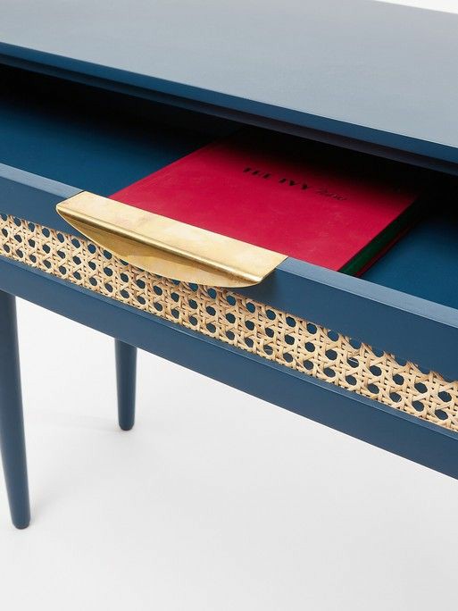 A lovely canne desk you can snag, if you need plenty of table space to spread out all those facts and figures while you work.