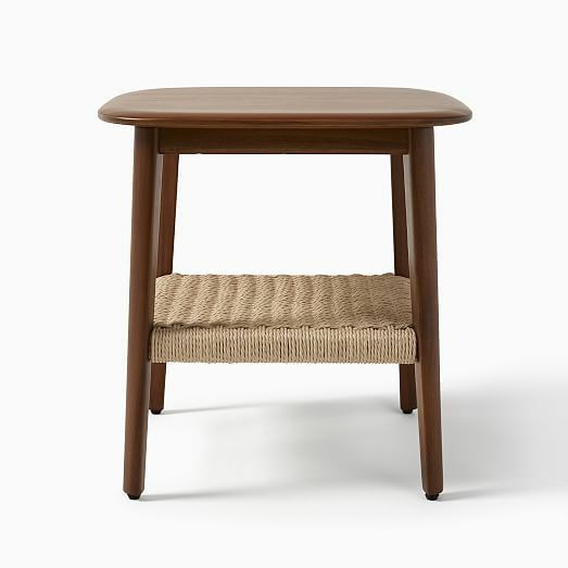 Constructed in solid wood,this hand crafted table has 1 jute bottom open shelf to provide you space to keep all your items handy.