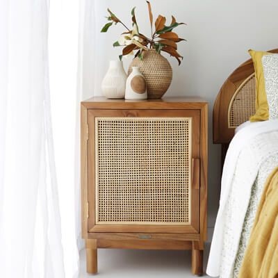 Our Wood canne nightstand is a beautiful little bedside cabinet that is perfect for contemporary home decor.