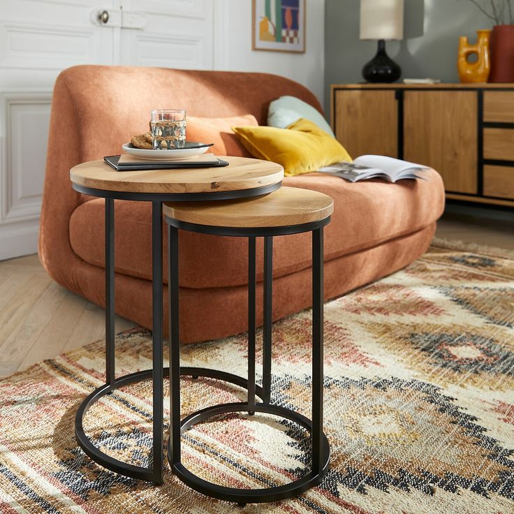 This unique round end table set features large table tops constructed with solid acasia wood and is a must-have accent piece for your home.