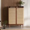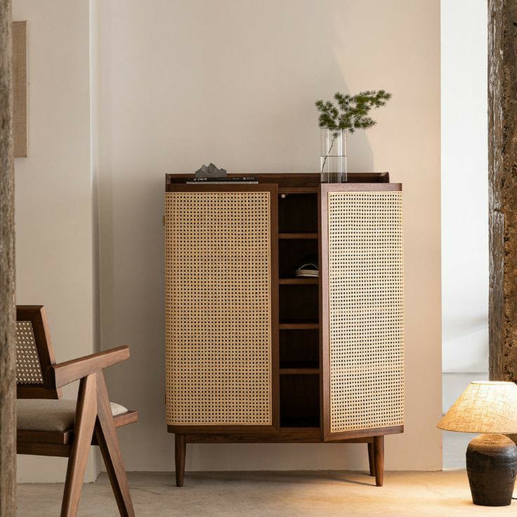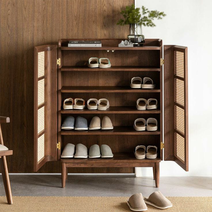 The Classic style with a mid-century blend is creating an upgraded look. Excellent quality solid wood is used in the construction of this shoe storage with Rattan net doors which also progresses ventilation and doesn’t let the inside stink.
