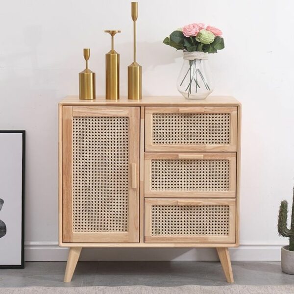 Our Wooden Sideboard with WICKER Drawers and cabinet is designed following the latest trends in interior decoration , fusing a careful vintage – style design with wicker details with a robust and resistant structure in solid wood .