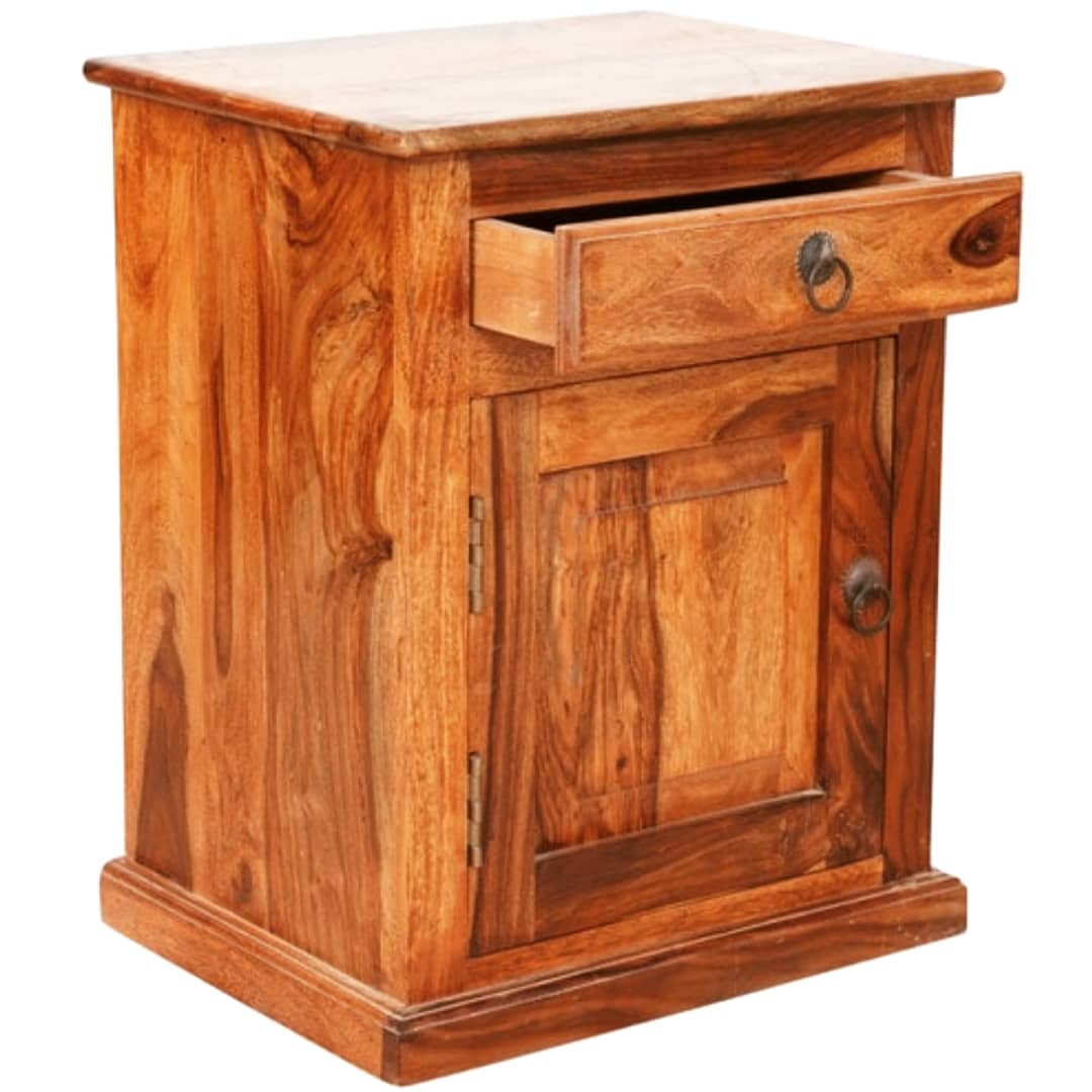 Our solid wood constructed storage unit puts the “fun” in multifunctioning. Choose from the available wood stain options and use it to stow magazines or throws, or to store books or hold a drink or use it as a bedside table.