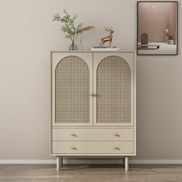 Characterized by the stunning natural rattan fronts and contrasting solid wood surround, our wicker storage unit brings a modern take on a retro design. Perfect for any contemporary or global styled home, this fully assembled furniture range is completed with metal handles, adding a touch of luxe styling.