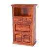 Its center comes with a one-pull chain door that opens to reveal wine bottles rack. At the bottom, you will find a two-door cabinet with a storage space to keep liquor bottles standing. The 4 drawers come accented with metal loop handles for a traditional look.