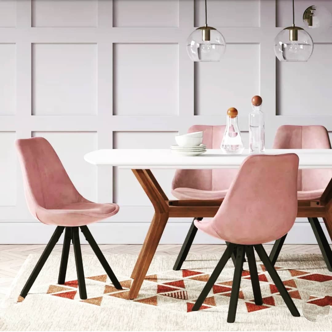 Add a little plush to your dining space with these Velvet Dining Chairs . These gorgeous modern dining chairs feature a molded bucket-seat design and velvet upholstery. The padded seat and backrest make them extra comfortable — perfect for enjoying a good meal with great company.