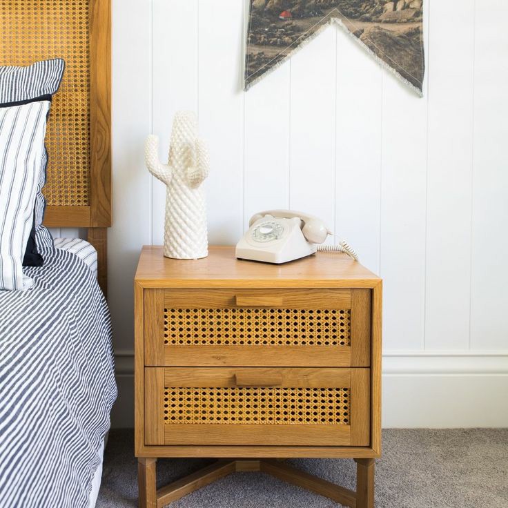 THE BEDSIDE TABLE IS CONSTRUCTED WITH WOOD CANNE & SOLID WOOD.THE WICKER IS HANDWOVEN, WHICH MAKES THIS PIECE EVEN MORE AUTHENTIC.