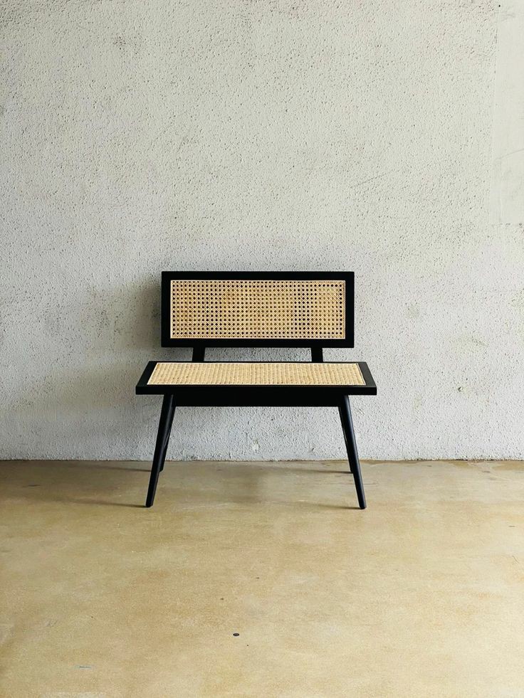 Inspired by the sculptural forms of Italian mid-century design, our Wood wicker Bench balances elegant curves with canne seat and back.