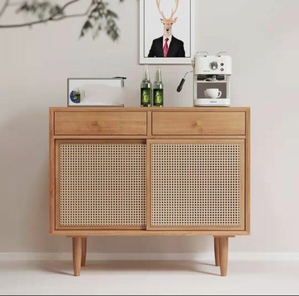 Featuring beautiful mango wood for a one-of-a-kind design, this server offers a warm boho look to your home, complemented by its wicker caning doors.